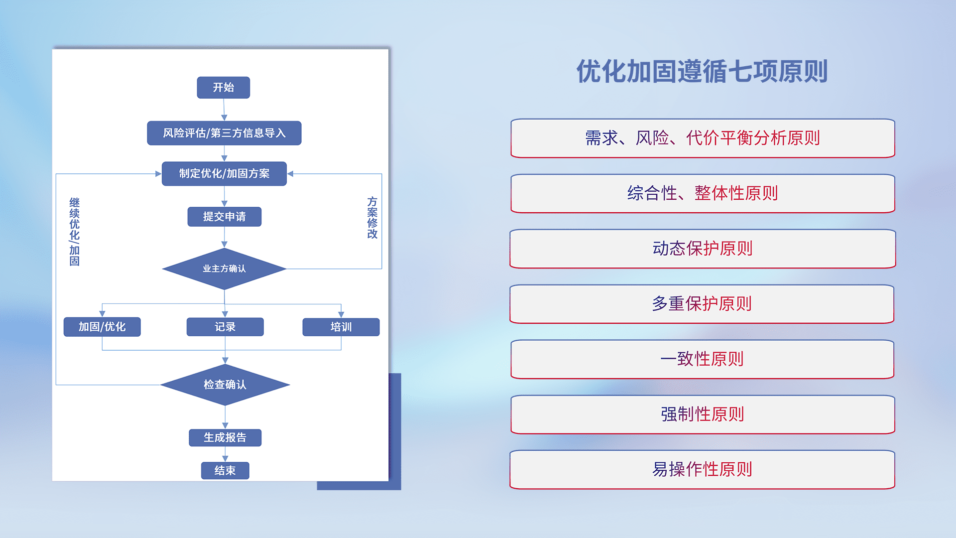 最大程度利用现有资产,,对评估发现的问题进行封堵与整改,,,防止漏洞被利用,,提升整体网络安全性,,,,为客户带来高标准的优化加固服务。。