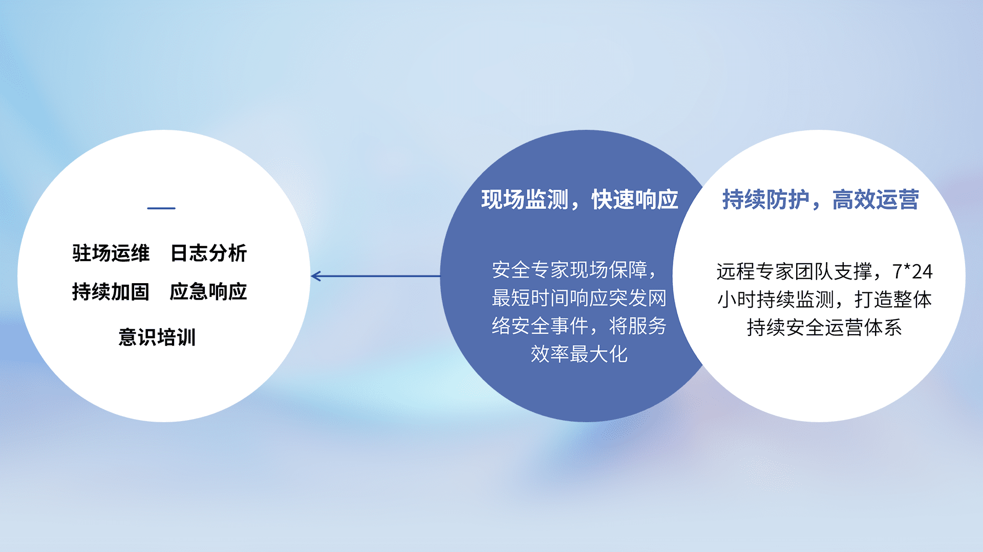 7X24小时持续监测安全事件,保持安全策略有效性,降低资产脆弱性风险,,,,精准拦截黑客攻击,,,减少被黑客利用的机会,,,第一时间遏制,,降低损失。。。